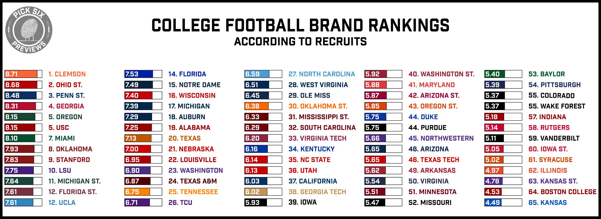 According to 224 recruits, these are the TOP BRANDS in college football.— Pick Six Previews (@PickSixPreviews) February 8, 2018