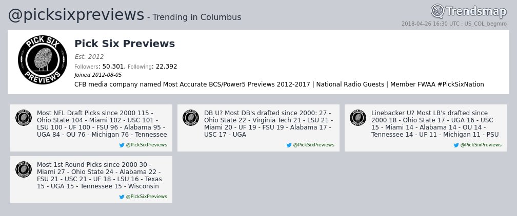 Most Draft Picks since 2010— Pick Six Previews (@PickSixPreviews) April 28, 2018